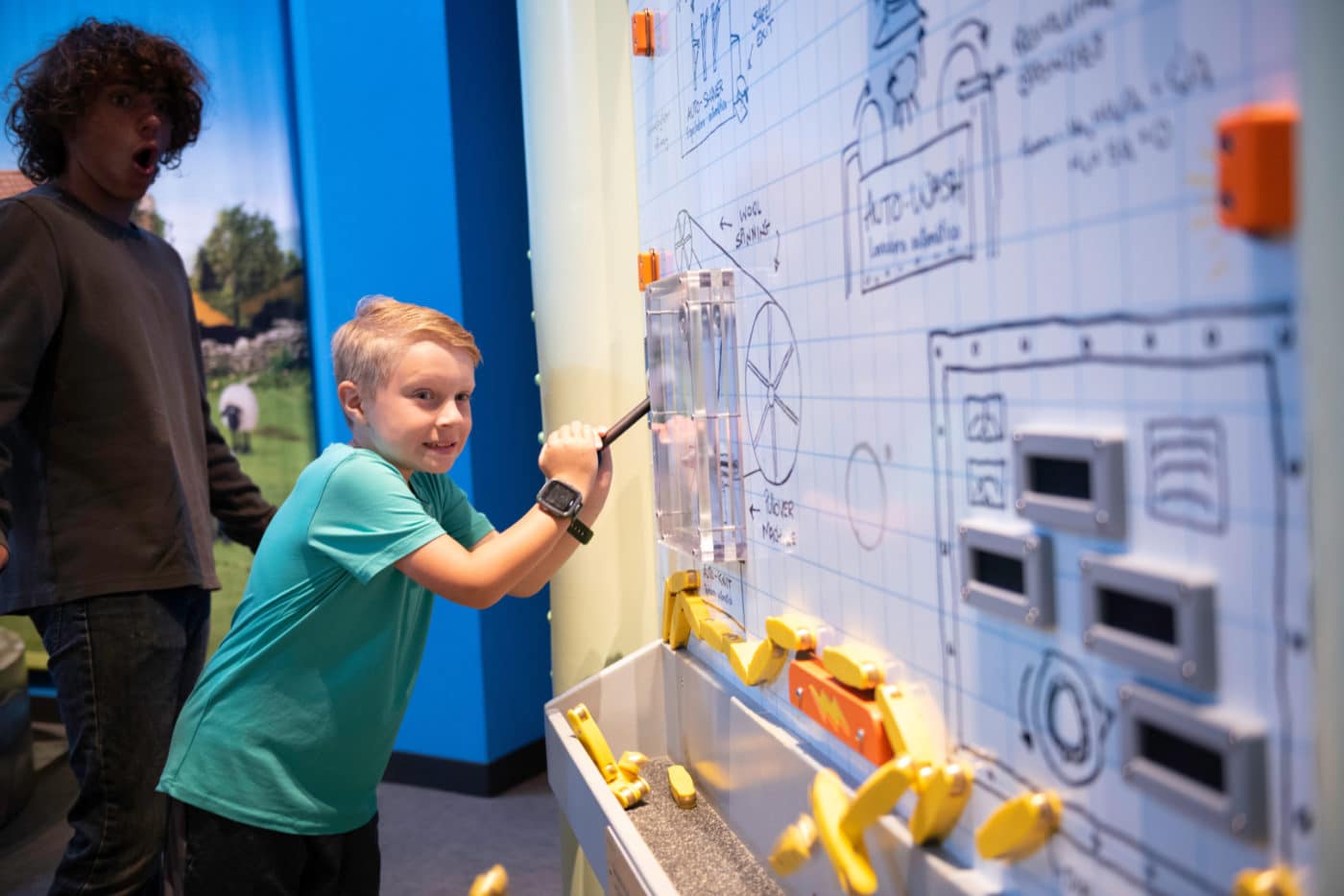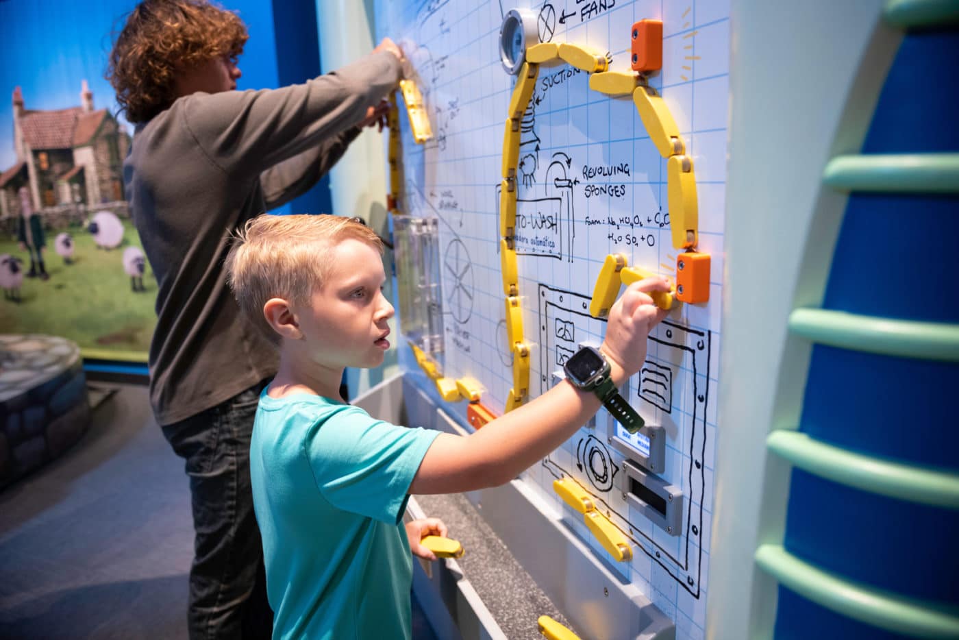 In Wallace’s world, inventions and contraptions often go terribly – but hilariously! – wrong, providing a natural opportunity to explore themes around problem-solving and resilience in a safe and lighthearted manner. Through a mix of unique and meaningful experiences, the exhibit focuses on STEM-based problem-solving, with the aim of making the problem-solving process explicit.